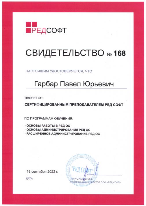 Перечень преподаваемых дисциплин:Основы работы с RedHat