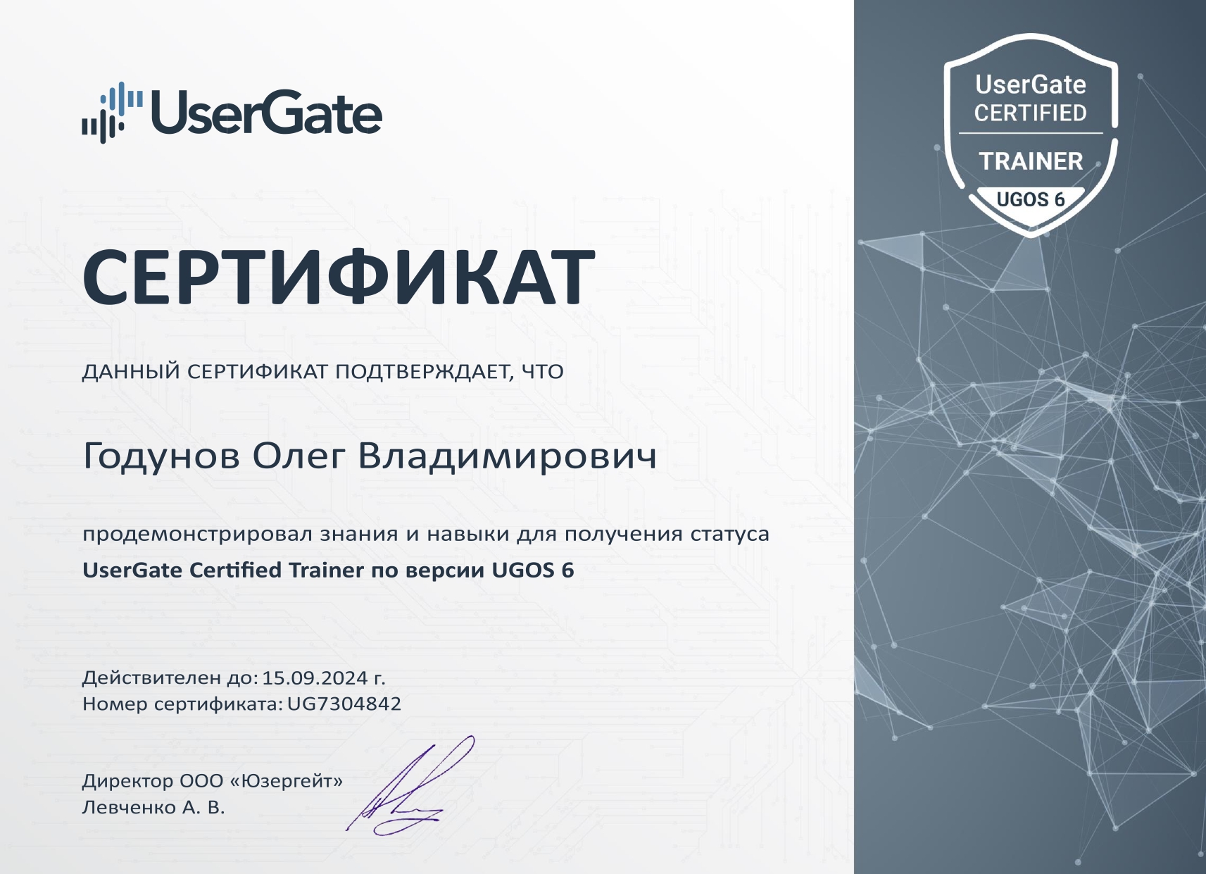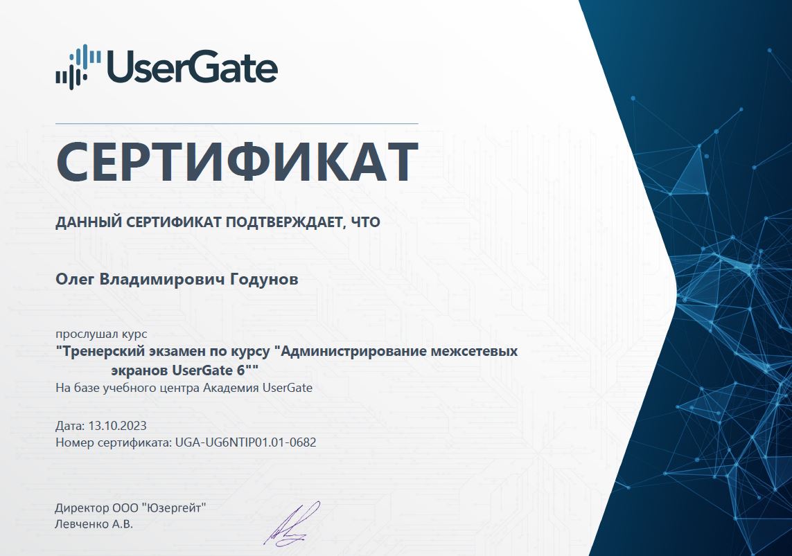 2023 г. - Учебный Центр UserGate по направлению «Администрирование межсетвых экранов»